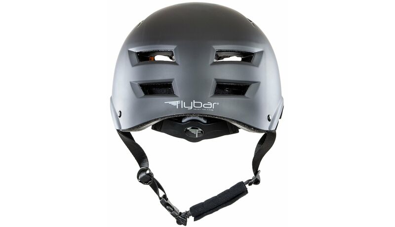 Τα κράνη της Flybar διαθέτουν προσαρμοζόμενο λουρί για να δένουν με ασφάλεια στο κεφάλι του αθλητή και περιστρεφόμενη ροδέλα στο πίσω μέρος που επιτρέπει την πλήρη προσαρμογή του κράνους στο μέγεθος του κεφαλιού.