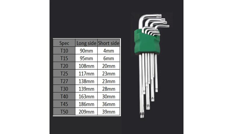 Μεγέθη: T10, T15, T20, T25, T27, T30, T40, T45, T50