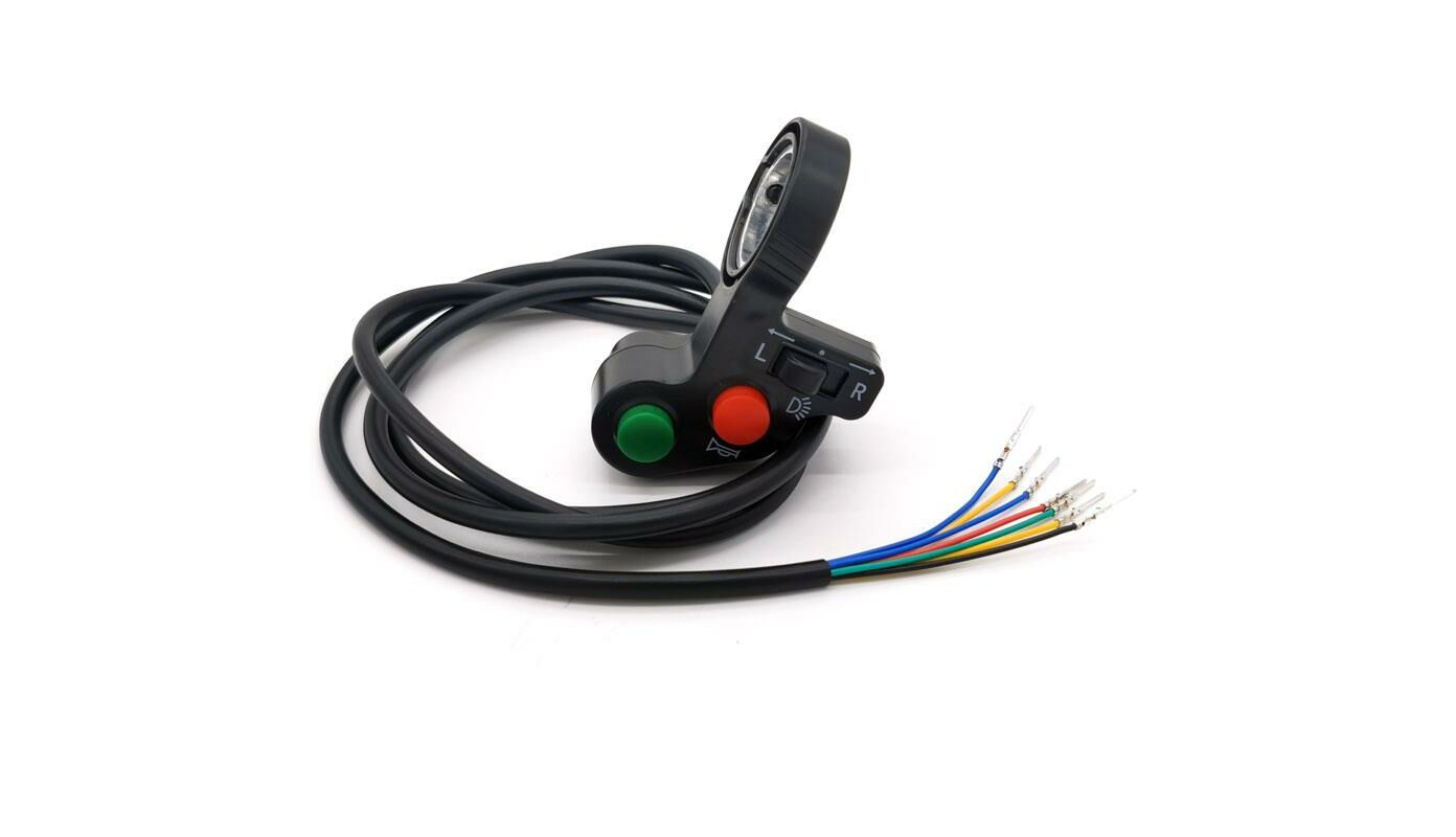 Διακόπτης τιμονιού για χειρισμό φώτων, φλας και κόρνας μαζί με 1.5 μετρό καλώδιο για την συνδεσμολογία του με τον ελεγκτή.
