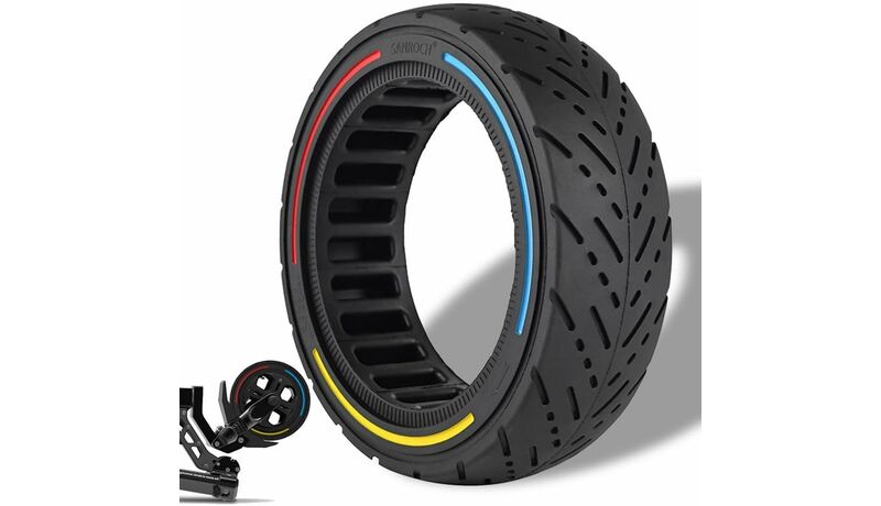 Ελαστικό Solid 8.5x2.5-6.1/B58 - Red Blue Yellow Circle για ηλεκτρικά scooter, το συγκεκριμένο ελαστικό δεν δέχεται σαμπρέλα και συνεπώς δεν χρειάζεται φούσκωμα.