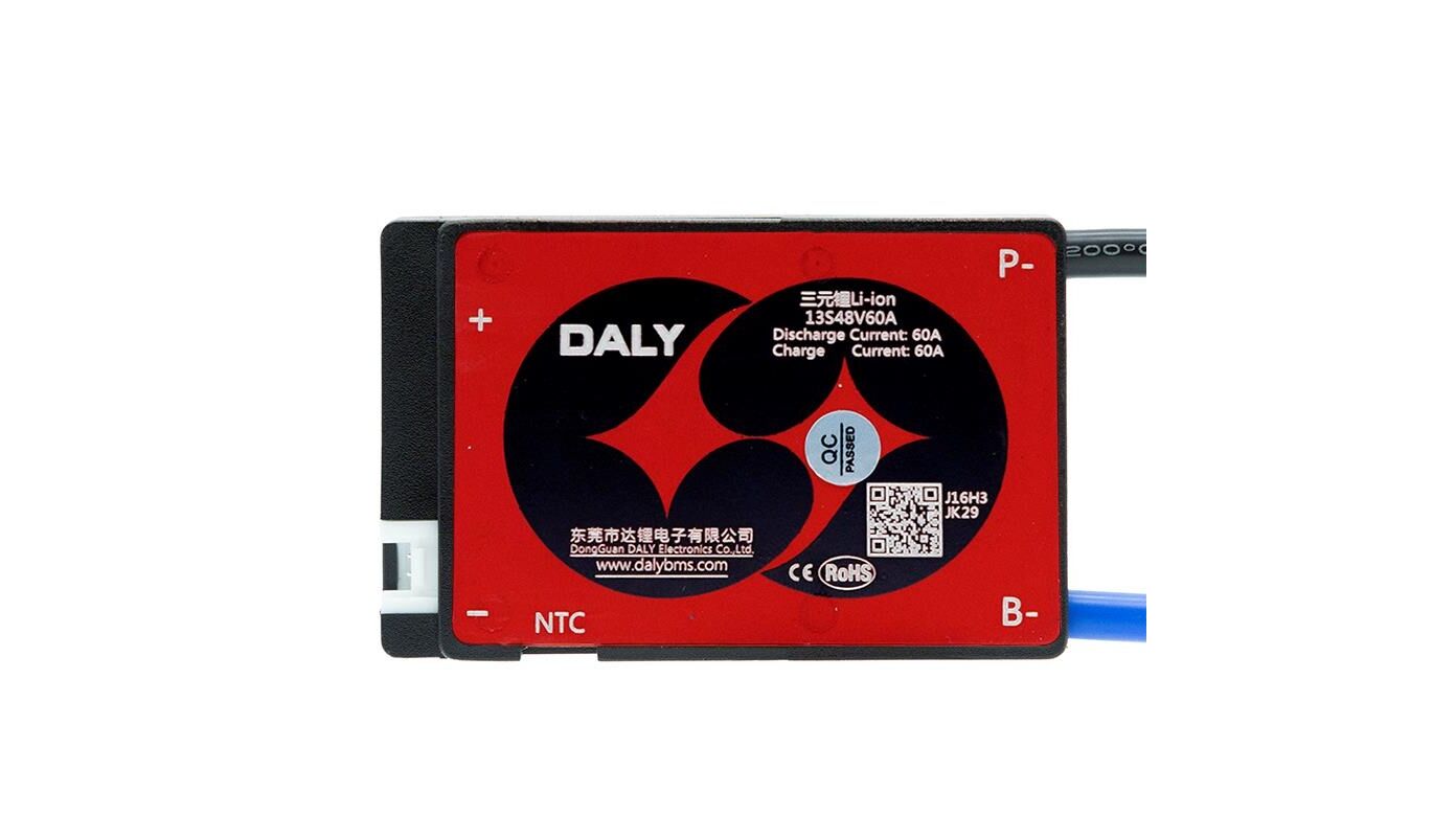 Το BMS 13S 48V 60A από την DALY είναι ένα Σύστημα Διαχείρισης Μπαταρίας (BMS) σχεδιασμένο για να παρέχει ασφάλεια, σταθερότητα και βέλτιστη απόδοση στις μπαταρίες λιθίου 13S (48V). Παρέχει προστασία από υπερφόρτιση, υπερεκφόρτιση, υπερένταση και βραχυκύκλωμα, εξασφαλίζοντας σταθερή λειτουργία. Διαθέτει ενσωματωμένη εξισορρόπηση για να διατηρεί όλα τα στοιχεία ισορροπημένα και να βελτιώνει την απόδοση. Είναι ιδανικό για ηλεκτρικά ποδήλατα, σκούτερ και άλλες συσκευές που απαιτούν προηγμένο έλεγχο μπαταρίας.