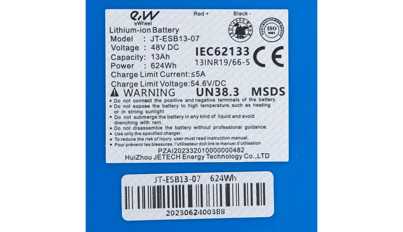 Η μπαταριά είναι κατασκευασμένη αποκλειστικά με EVE cells 10S5P και φτάνοντας τα 12.5 ah θα σας δώσει μια αυτονομία της τάξεως των 50 χιλιομέτρων.