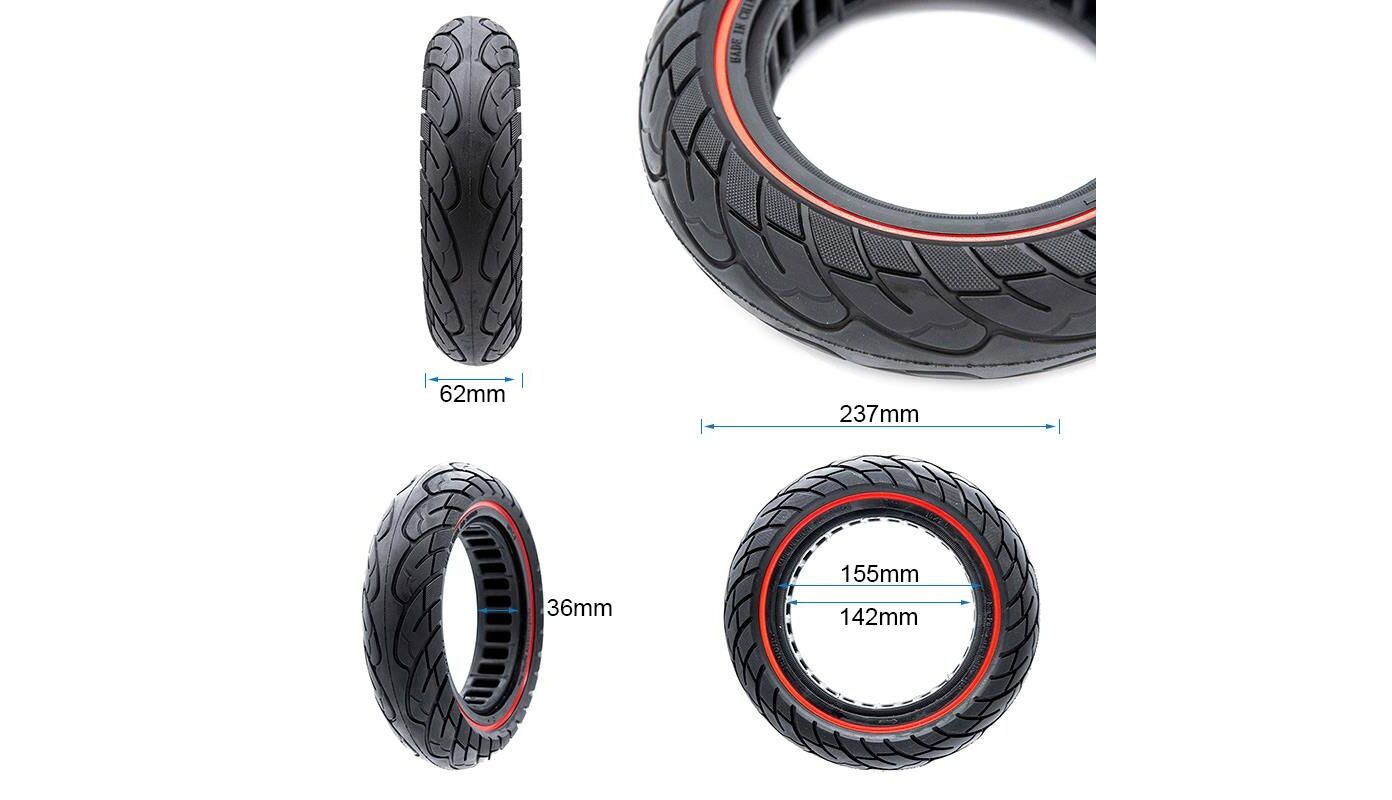 Το συμπαγές ελαστικό 10x2,5-6,5 προσφέρει ανθεκτικότητα και αντοχή για ηλεκτρικά σκούτερ. Δεν απαιτεί φούσκωμα, εξαλείφοντας τον κίνδυνο τρυπήματος, εξασφαλίζοντας αξιόπιστη οδήγηση. Ιδανικό για αστικό έδαφος, είναι ιδανικό για χρήστες που αναζητούν μια στιβαρή επιλογή με χαμηλές απαιτήσεις συντήρησης.
