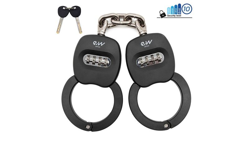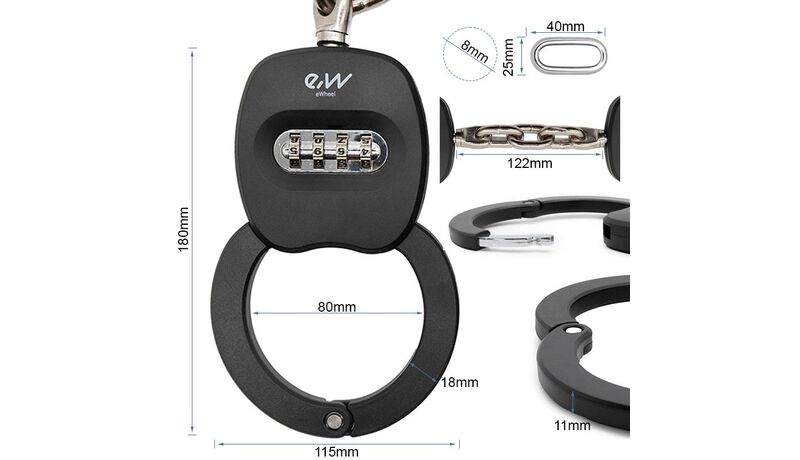 Κλειδαριά πολλαπλών χρήσεων: Η κλειδαριά χειροπέδας είναι κατασκευασμένη από σκληρυμένο χάλυβα, το συνολικό μήκος της κλειδαριάς αλυσίδας είναι 10 cm και η διάμετρος κλειδώματος 75 mm ιδανικό για τα περισσότερα ηλεκτρικά πατίνια της αγοράς, ηλεκτρικά ποδήλατα, ποδήλατα και σκάλες, καροτσάκια, μοτοσυκλέτες, κ.λπ.