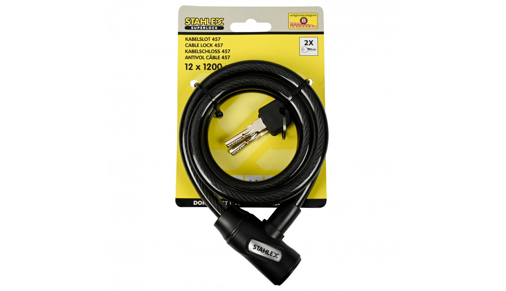 Λουκέτο ασφαλείας ποδηλάτου με κλειδί 120cm Φ12mm, STAHLEX• Ατσάλινο συρματόσχοινο, ασφαλές και εύκαμπτο.