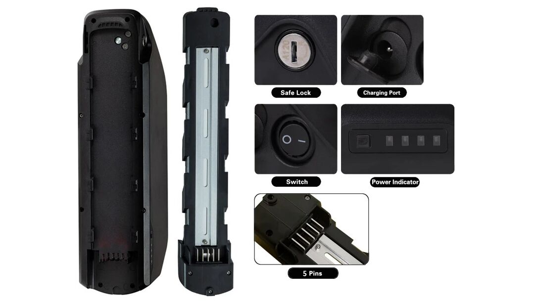 Αφαιρούμενη μπαταρία 36V 10,4 Ah για ηλεκτρικό ποδήλατο με μεγαλύτερη εμβέλεια και διάρκεια ζωής χάρη στις υψηλής ποιότητας κυψέλες Samsung ιόντων λιθίου που διαθέτει.